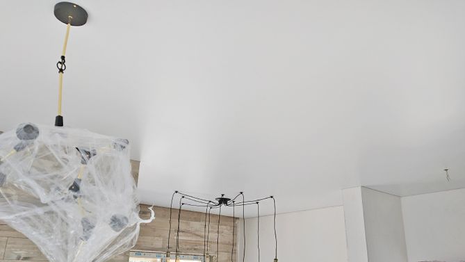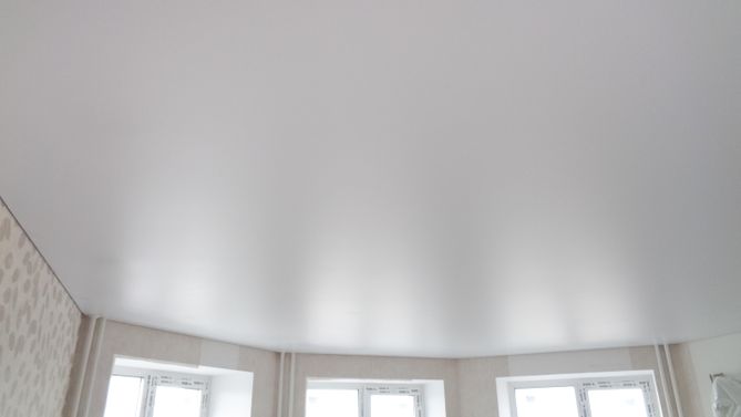 Бесшовный сатиновый натяжной потолок на кухню 13,3 м2