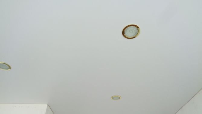 Бесшовный сатиновый натяжной потолок для зала 19 м2